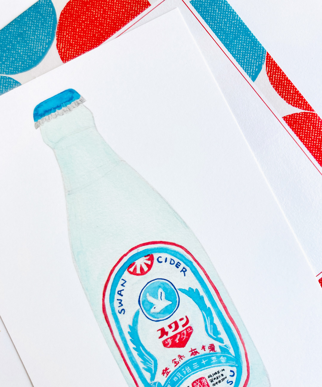 Watercolor artwork print of a Japanese cider bottle