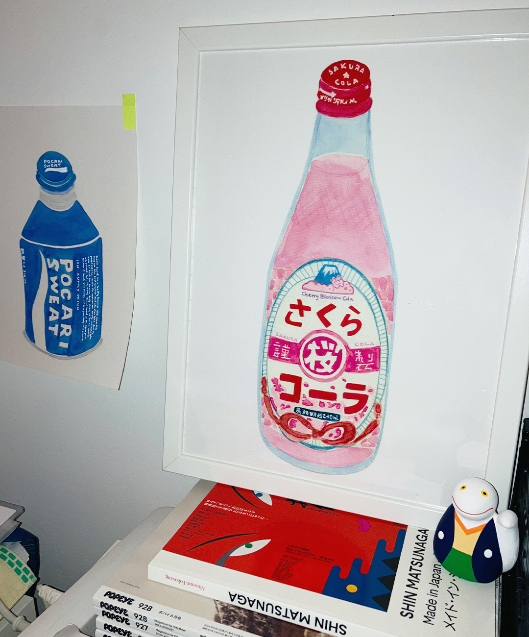 Watercolor artwork print of a Japanese Cola bottle